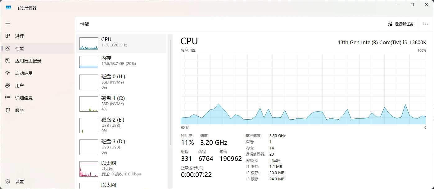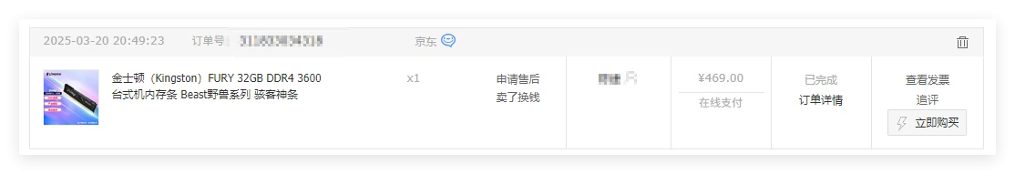 内存增加了一条 32G 3600(原来有一条 32G3600)